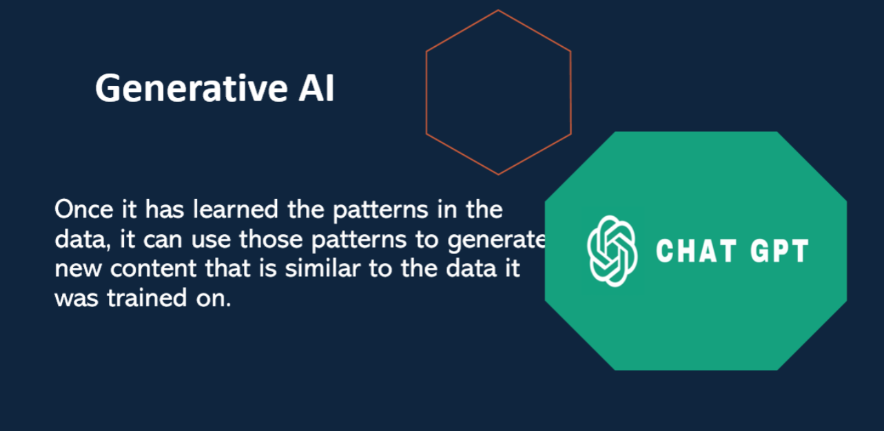 Once it has learned the patterns in the data, it can use those patterns to generate new content that is similar to the data it was trained on.